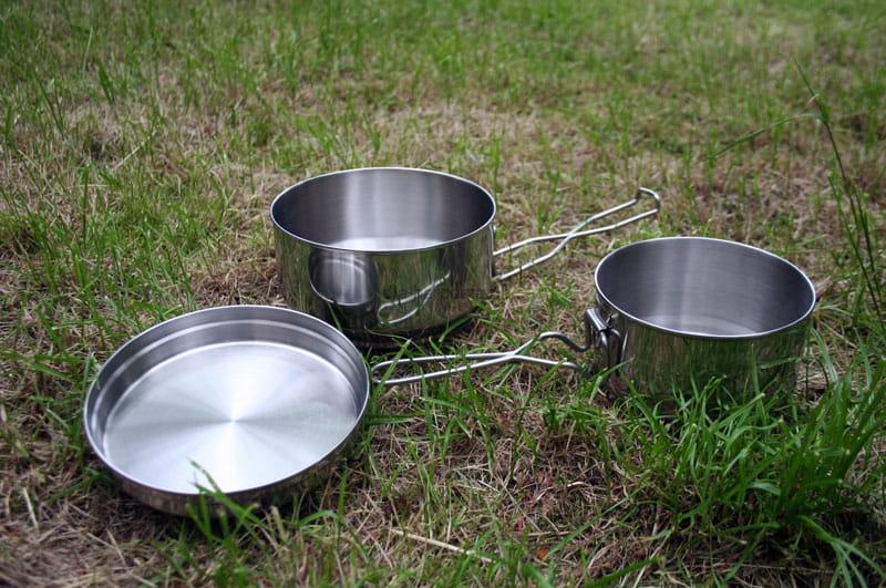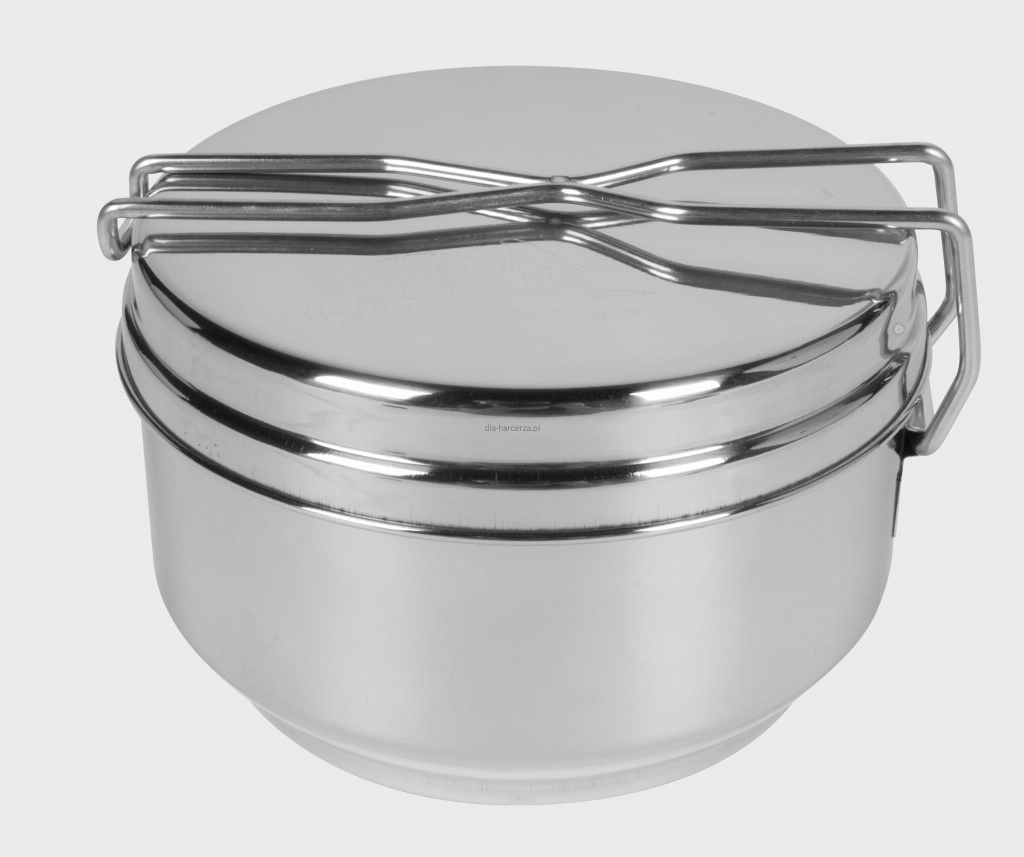Menażka składa się z trzech części: dwa wkładane w siebie naczynia o pojemnościach: 1 litr (średnica 15 cm) i 0,7 litra (średnica 13 cm) oraz pokrywka o średnicy 15 centymetrów, której można używać jako małego talerzyka. Całość wykonana z elektropolerowanej stali nierdzewnej, której grubość pozwala na gotowanie bezpośrednio na ogniu, bez ryzyka spalenia naczyń.